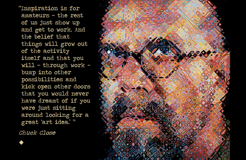 “Inspiration is for amateurs — the rest of us just show up and get to work.” Chuck Close on creativity and work ethic http://j.mp/1gnPefv