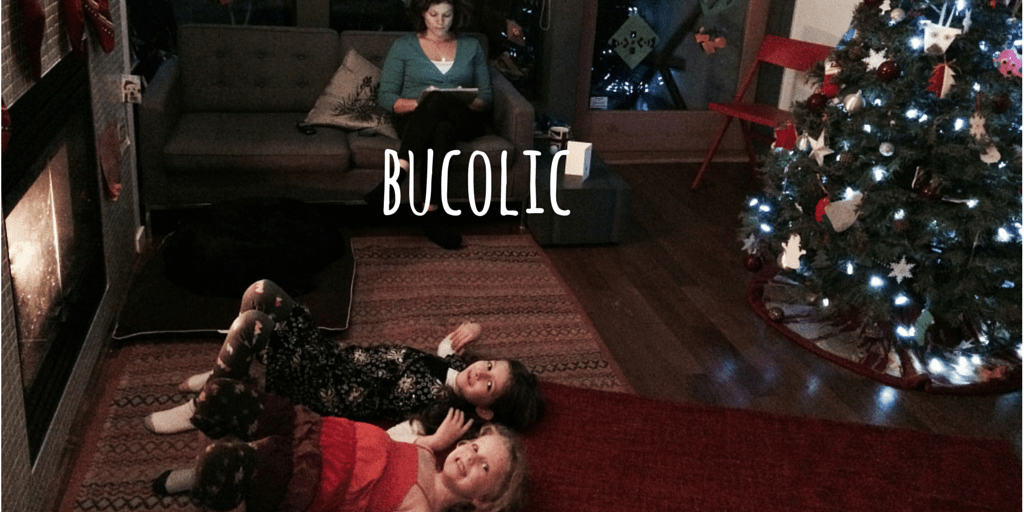 The photo above is as bucolic as it gets. A fireplace on a winter’s day, the family ensconced, eating gingerbread in front of the Christmas tree, dancing around the living room, the dog asleep after a swim in the ocean, me reading and writing and imagining…and reflecting on all that I have. Lucky me.