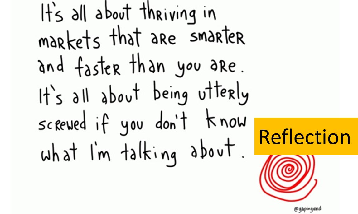 As the gapingvoid cartoon asserts, acknowledge that the world is moving faster than you, and there are others who are well ahead; and use it to spur you to action. ACTION!