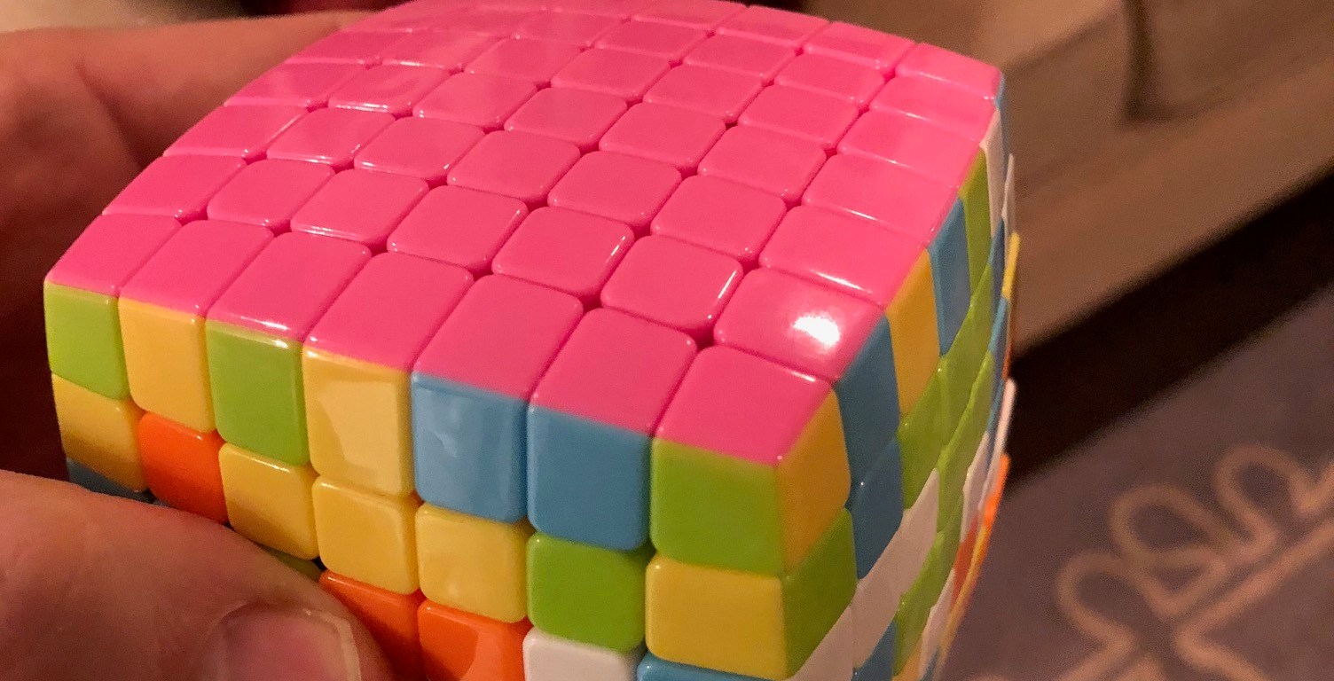 On Sunday I visited a house that had dozens of Rubik’s cubes kicking around. I picked one up for the first time in 25+ years and set to task – to finish one side. I chose the largest cube I could find.