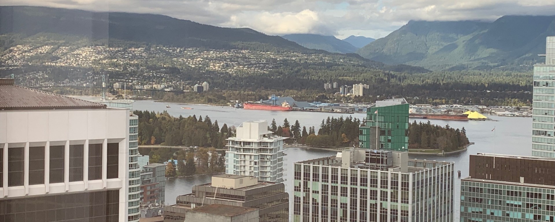 Similar, in that it is located in the next building to Teekay’s, so my bike commute will be almost identical. Different, in that I will even higher in the sky, with an even better view of downtown Vancouver from the office.