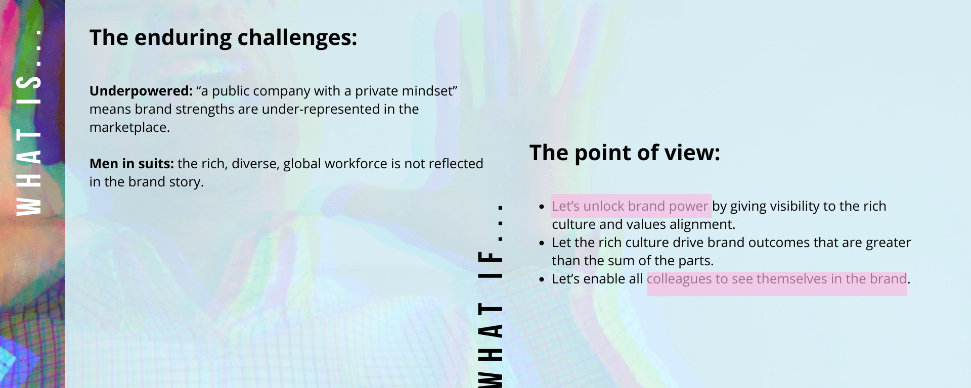 - Let’s enable all colleagues to see themselves in the brand.