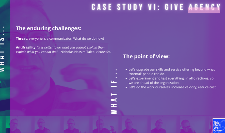 Let’s talk about people, and creating the environment where they feel in control of their destiny, able to deliver more and better. The category design case study is about giving people agency by creating an agency. Here are the other … Continue reading Category Design Case Study VI: Give AGENCY.